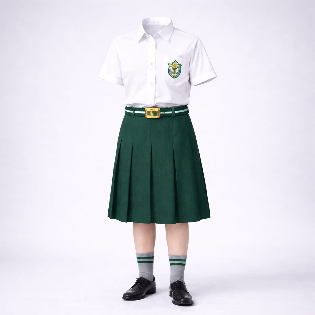Bottle-Green Pleated Skirt & White Shirt — DPS-Style Girls Uniform