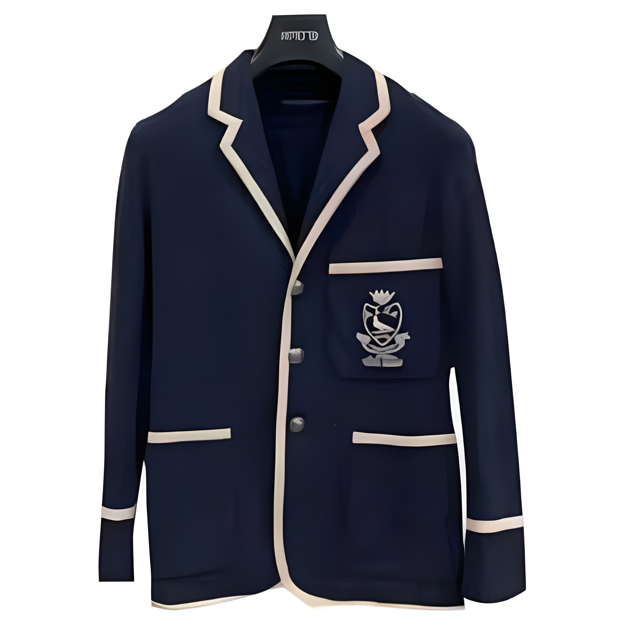 Essay Sports is a trusted school uniform manufacturer specializing in custom navy blue school blazers with contrast piping for bulk orders from schools, colleges, academies, and uniform distributors.
